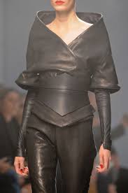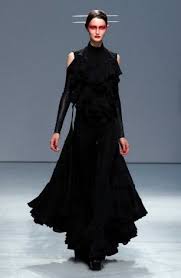 That said, anyone looking for a soft spring collection needs to look elsewhere as Pugh was inspired by "the rawness of Latin American cockfighting" for his hard-edged, heavy on leather, fringe, and ruffles lineup. In keeping with the inspiration, monochrome looks came in black, red, and white and one of the most striking was a floor-sweeping black dress finished with a two foot mourning veil.